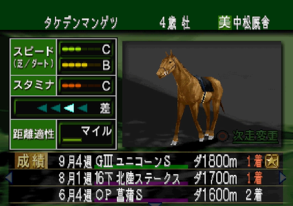 9/4週にユニコーンSを勝利し重賞2勝目を飾ることが出来た。
