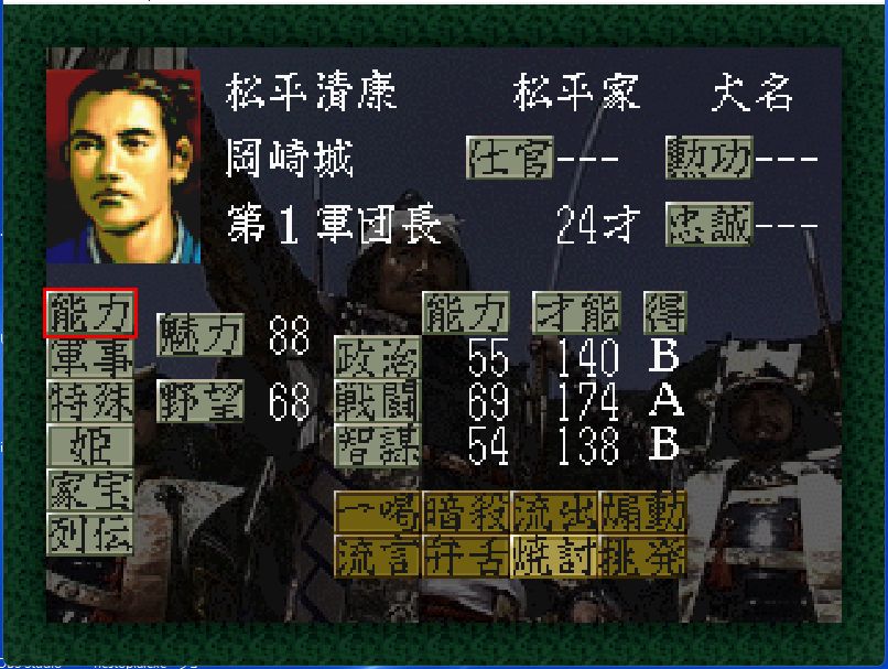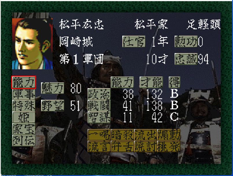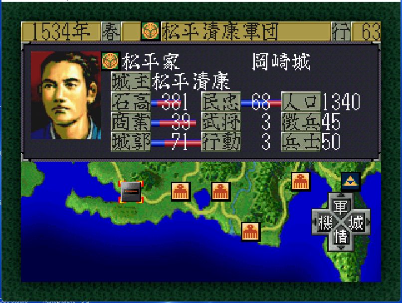 松平広忠が元服。政治も戦闘も中途半端で才能もB。なかなか厳しい。