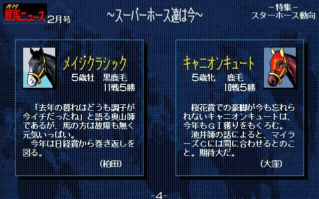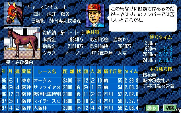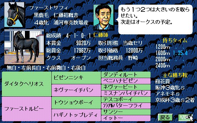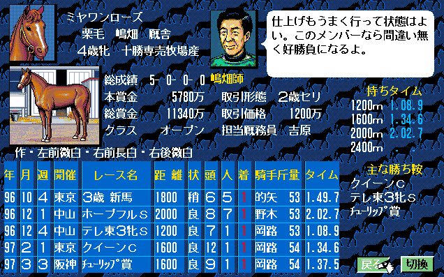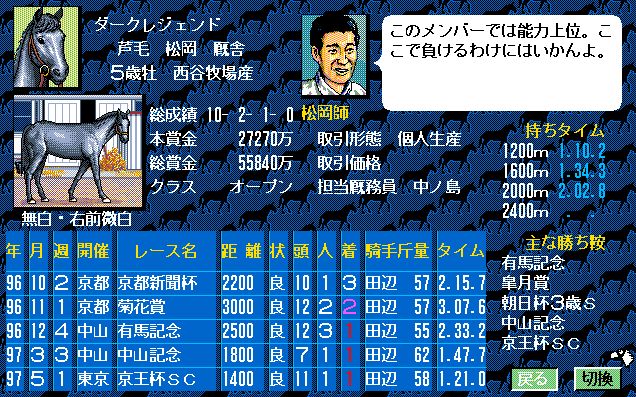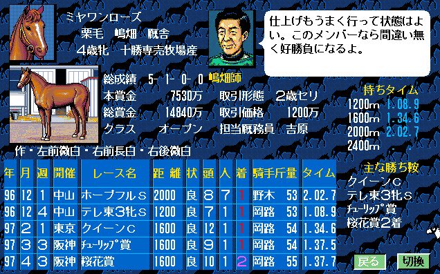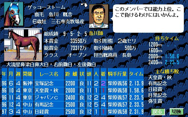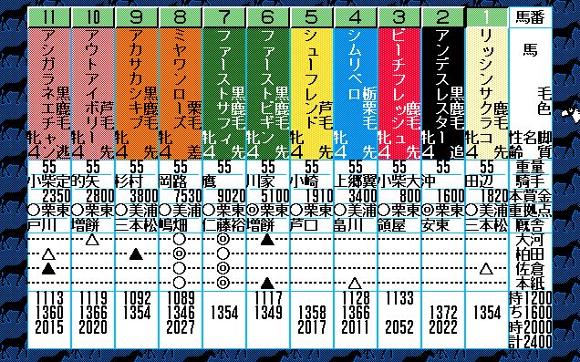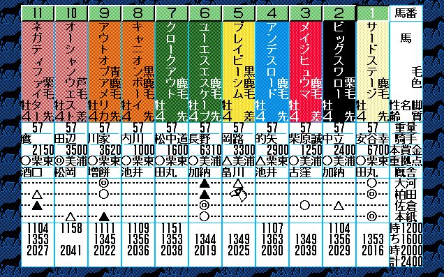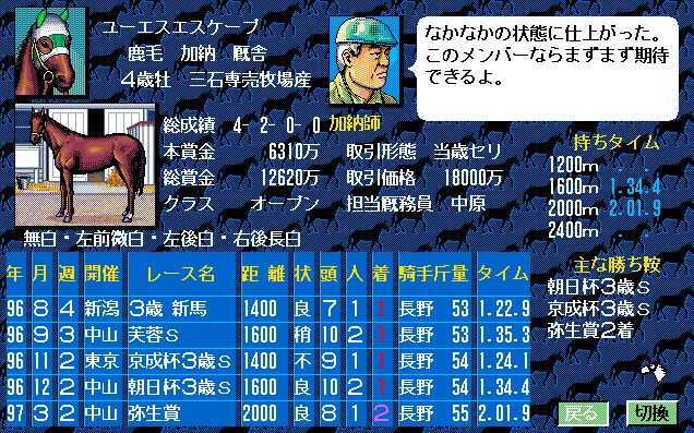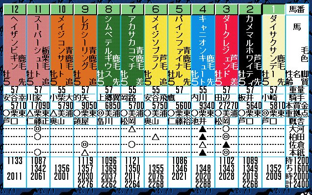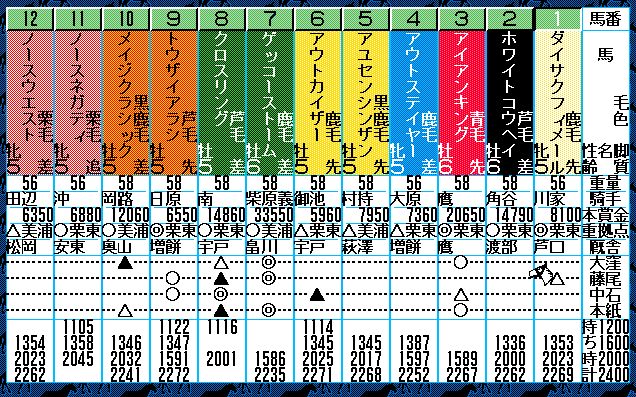 2番人気はユーエスエスケープ。弥生賞で負けはしたが、3歳チャンプの意地をみせたいところ。