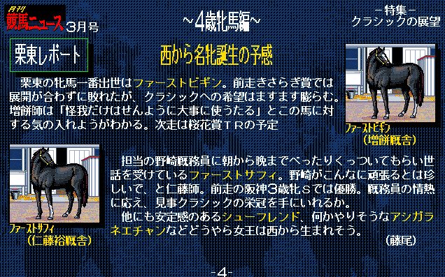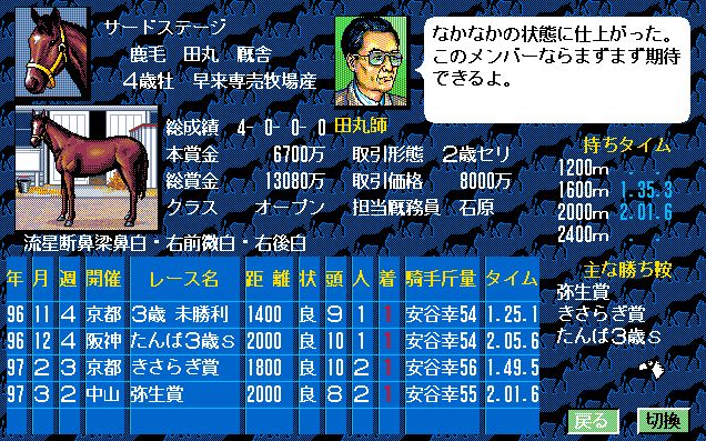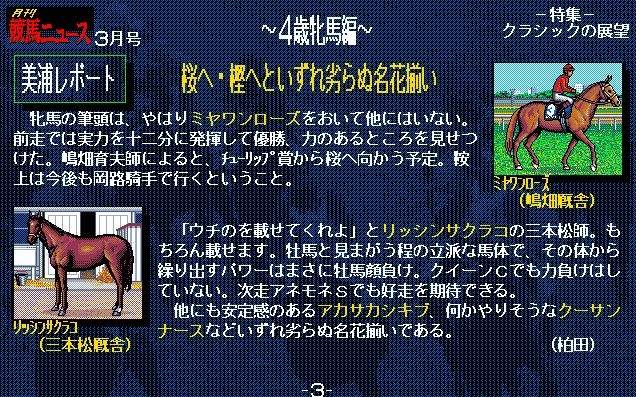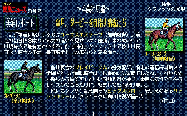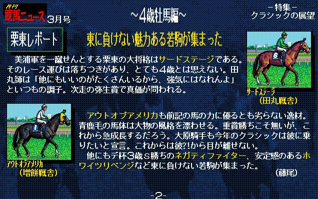 1番人気はサードステージ。前走の弥生賞でライバル・ユーエスエスケープを下しており、ここは負けられない。シンボリルドルフ、トウカイテイオーの血を繋ぐ使命も背負い、いざ出走!