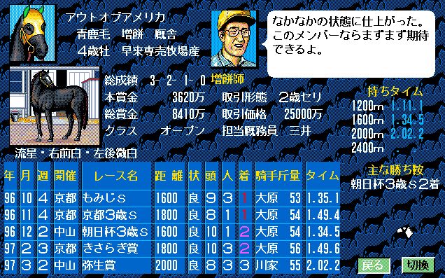 3番人気はアウトオブアメリカ。朝日杯3歳S、きさらぎ賞、弥生賞と、上位2頭に負け続けており3番手は否めない。