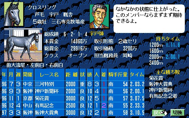 3番人気はクロスリング。前走の阪神大賞典では、アイアンキングを退けていながら3番人気。実績の差といったところか。ここはチャンス有りとみる。