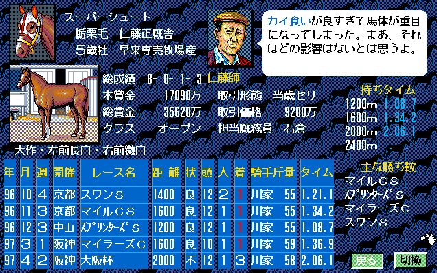 2番人気は短距離界のエース、スーパーシュート。若干、調整に失敗の懸念あるも自力に勝るか。